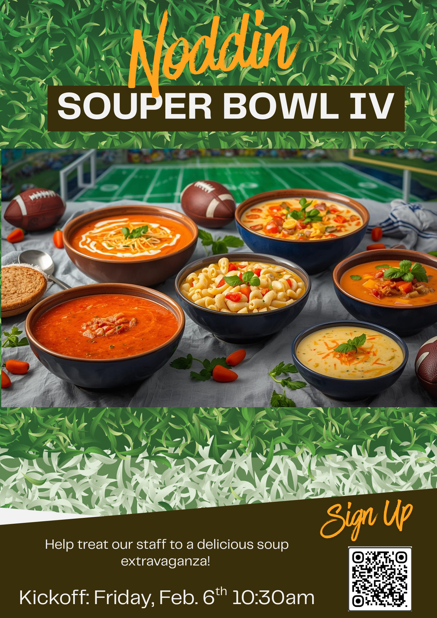 Sign up to bring in your favorite soup or sides for our annual football themed staff SOUPer Bowl!